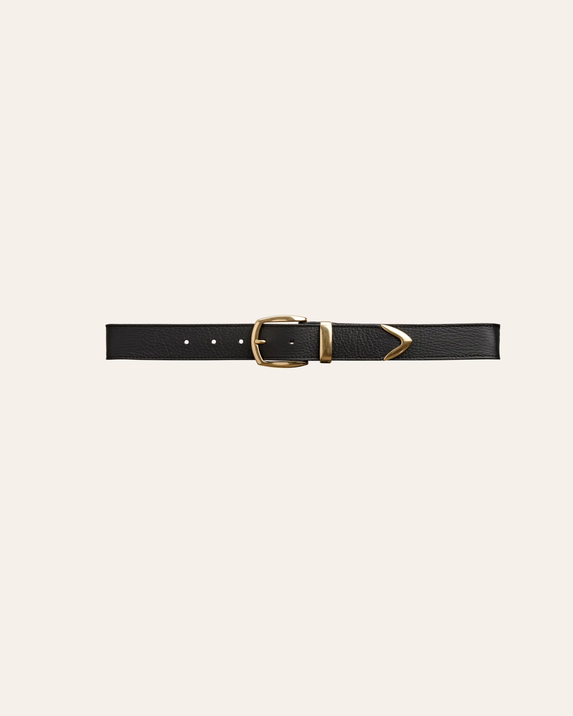 Nebel Black Gold is a classic belt made in Italy from soft Cowhide leather, finished with a gold buckle. Loop it through your favorite jeans, or slip it around an oversized blazer or dress.